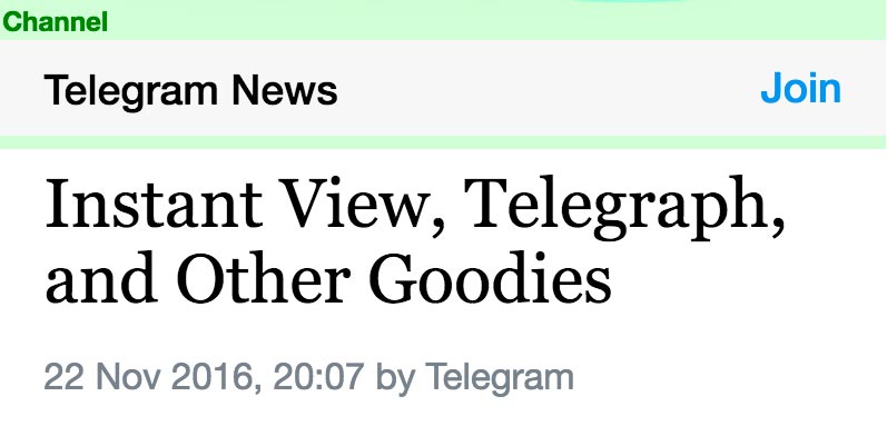Tip: You may display the official Telegram channel of the website that published the article at the top of the IV page (by using the channel property). To be considered official, the channel must be labelled as such somewhere on the source website (doesn't have to be on the same page as the original article).