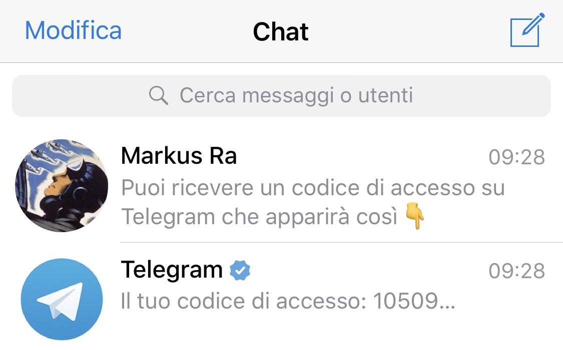 Per ricevere questo codice, controlla semplicemente Telegram da uno dei tuoi dispositivi connessi.
