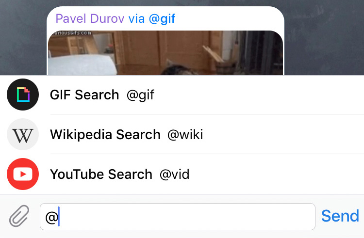 Here are some sample inline bots, in case you’re curious to see one in action. Try any of these: