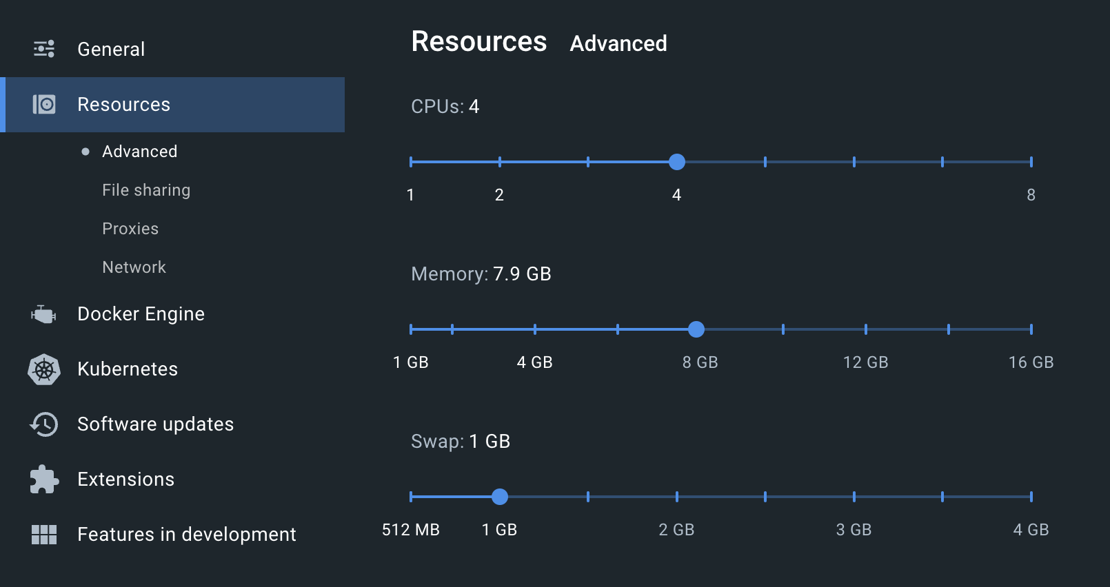 Docker can be obtained here. Once the installation is complete, log into your Docker account > Settings > Resources > Advanced and configure the amount of resources Docker may use: